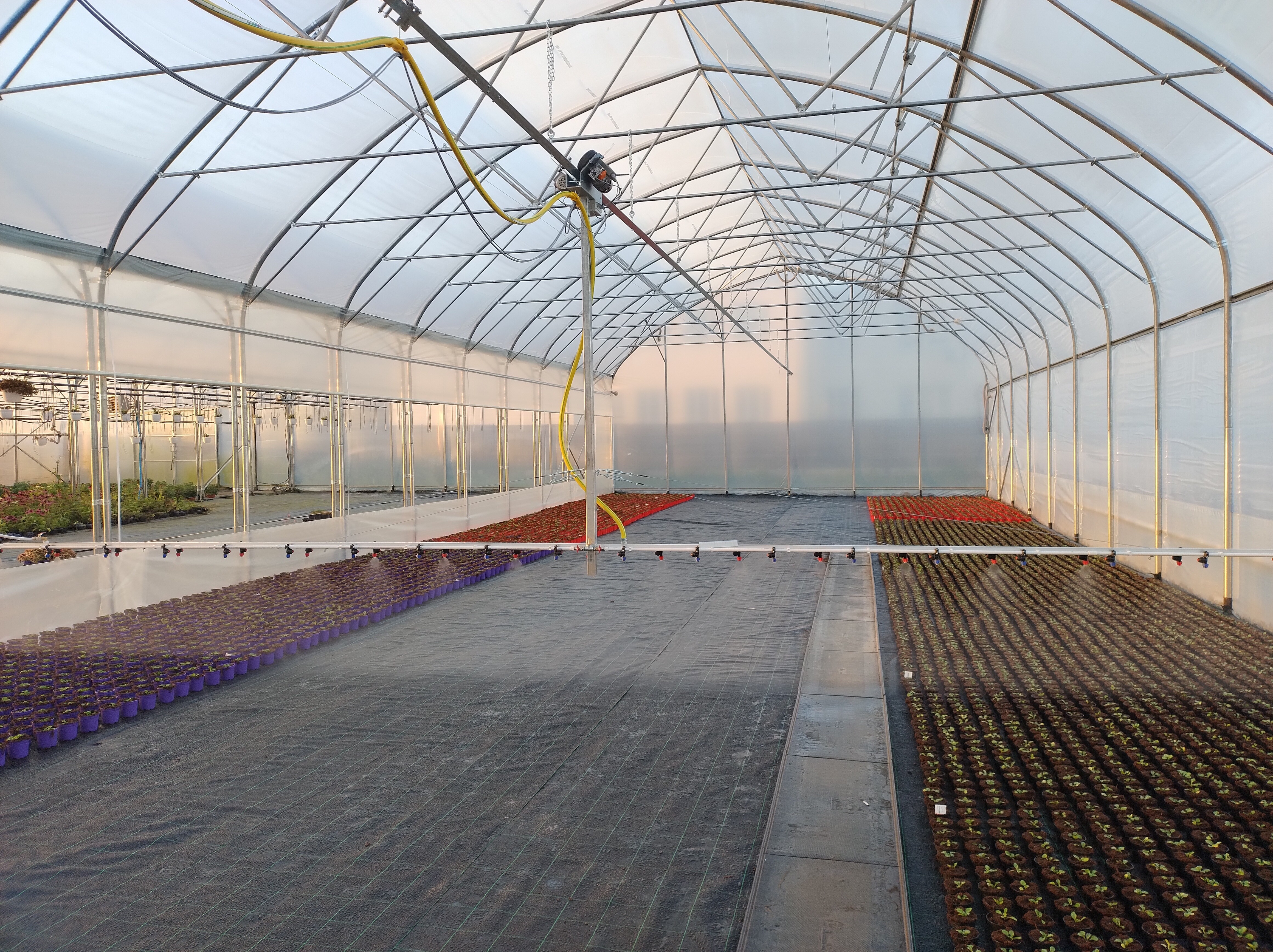 W zależności od rodzaju produkcji ogrodniczej i oczekiwań dotyczących sposobu nawadniania możliwe jest zastosowanie różnych rodzajów rur nawadniających i kilku typów dysz zraszających. Konstrukcja ramion wykonana jest z trwałych, sprawdzonych w warunkach szklarniowych materiałów. Elementy stalowe zabezpieczane są przed korozją poprzez galwanizowanie na gorąco. Możliwa jest skokowa regulacja wysokości jej usytuowania nad uprawą.